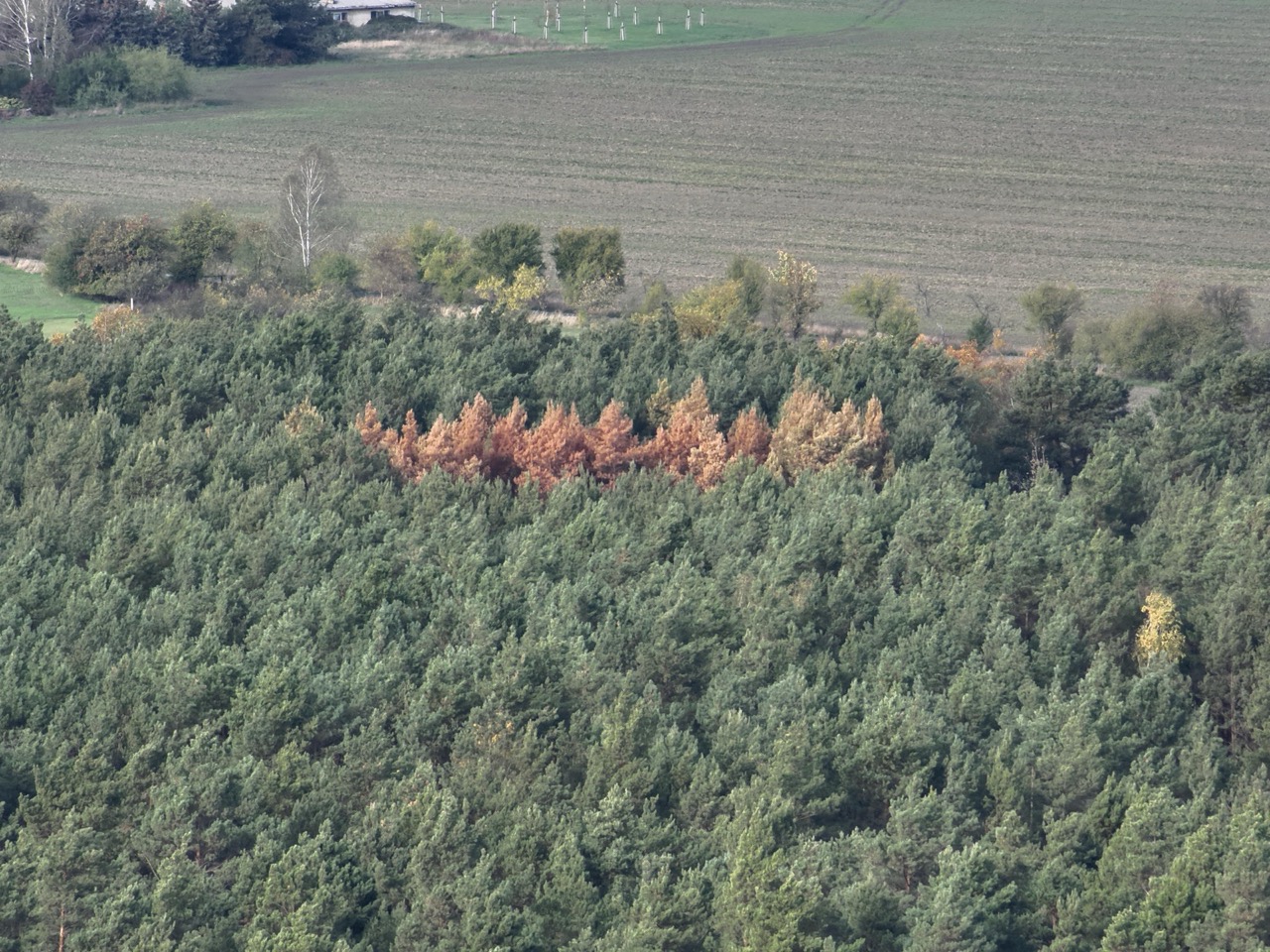 Zielsichere Erkennung befallener Bäume: Dank modernster Zoom-Kameratechnik erkennen wir betroffene Kronen schnell und zuverlässig – bevor es zu spät ist.